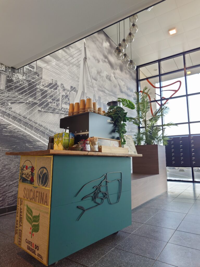 De bar is stijlvol en chique ingericht. Wij kunnen voor alles zorgen: van zelf gebrande koffiebonen tot bedrukte bekers en van luxe patisserie tot een persoonlijke aankleding.